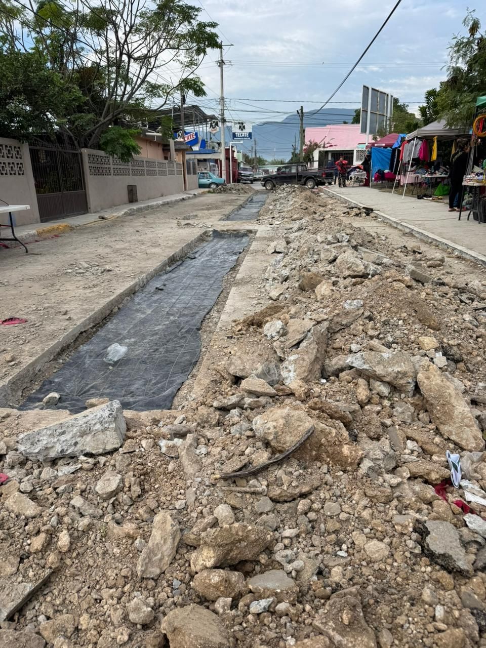 A este revestimiento, que costó 1 millón 793 mil 686 pesos en el 2024, primero se le hicieron dos enormes zanjas para reparar el drenaje sanitario a mediados del presente año frente a la plaza, las cuales fueron cubiertas con asfalto, en lugar de cemento.