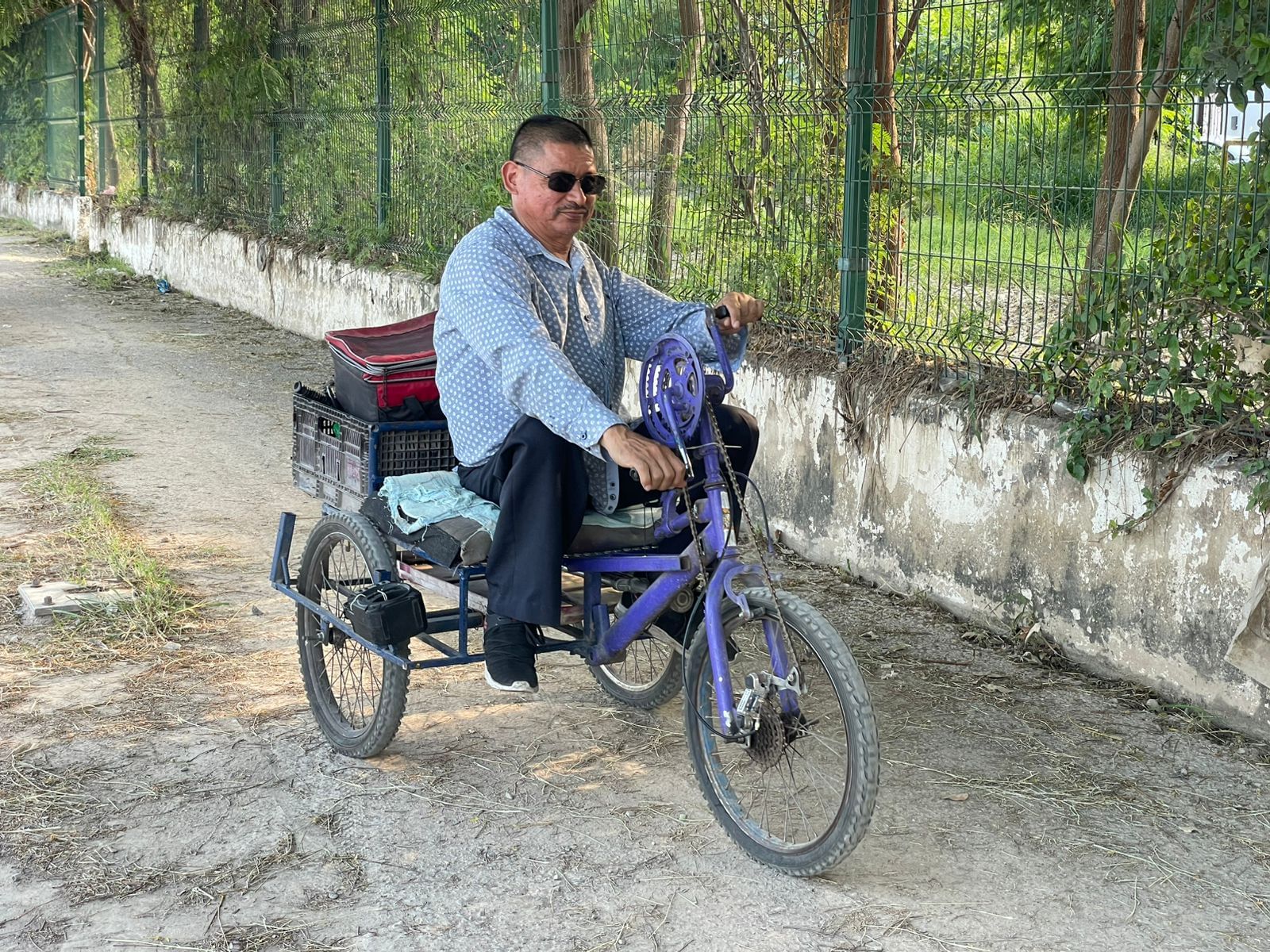 Con más de 25 años movilizándose en su triciclo adaptado, Juanito se ha convertido en un personaje reconocido por vecinos, comerciantes y personas que lo han visto avanzar incansablemente por las calles de la ciudad.