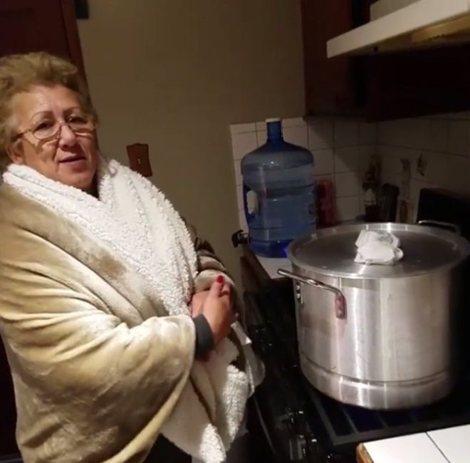 “Que no ves que me dejaron enverg#$@ con la olla de tamales, mira. Según yo hice tamales, pa’ llevarles y que iban a venir por mí, pura ver%$@; pues ni modo, allá que se los trague la chiva. Yo queriendo, dije: ‘Voy a quedar bien, les voy a llevar una olla de tamales con champurrado, porque pues en el rancho hace frío. 50 tamales hice, eso nomás es pa’ la quinceañera y para su papá. Es que yo hice 50 tamales, pero nomás pa’ la chiva a la ver#$@“.