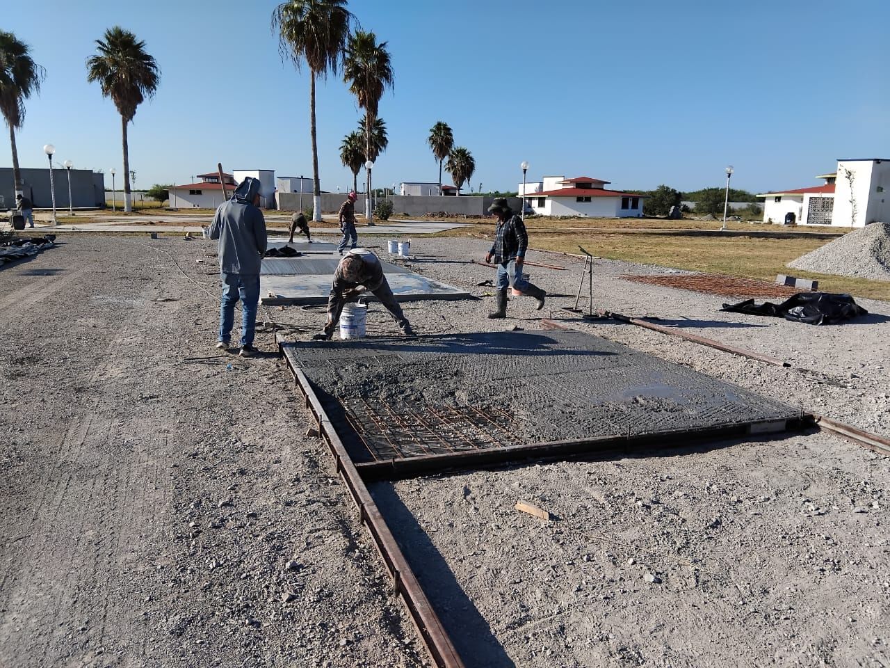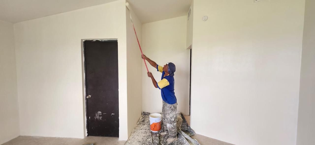 Señaló que, en la etapa actual se están colando y puliendo los pisos de las canchas de usos múltiples, renovando el cuarto de lavandería, instalando ventanas de acrílico, colocando inodoros y lavamanos de acero inoxidable, y aplicando pintura.