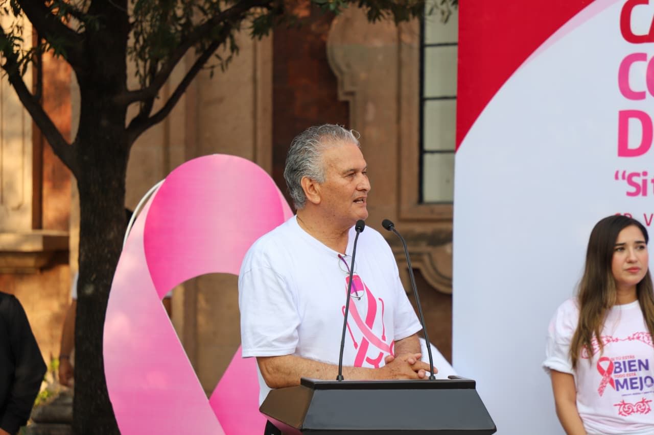 Como parte de las actividades para conmemorar el Día Internacional de Lucha contra el Cáncer de Mama y acompañado de la líder de la burocracia estatal, Blanca Valles Rodríguez; de la presidenta del Supremo Tribunal de Justicia, Tania Contreras López; y de su esposa la señora Yolanda Rivera de Hernández, el titular de Salud llevó a cabo la carrera de concientización y sensibilización de este padecimiento, así como incrementar la responsabilidad de mujeres, hombres y población en general en la prevención y detección temprana del cáncer de mama.