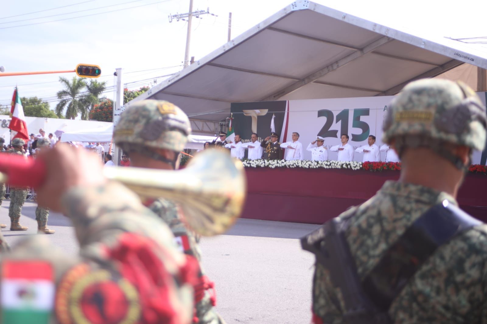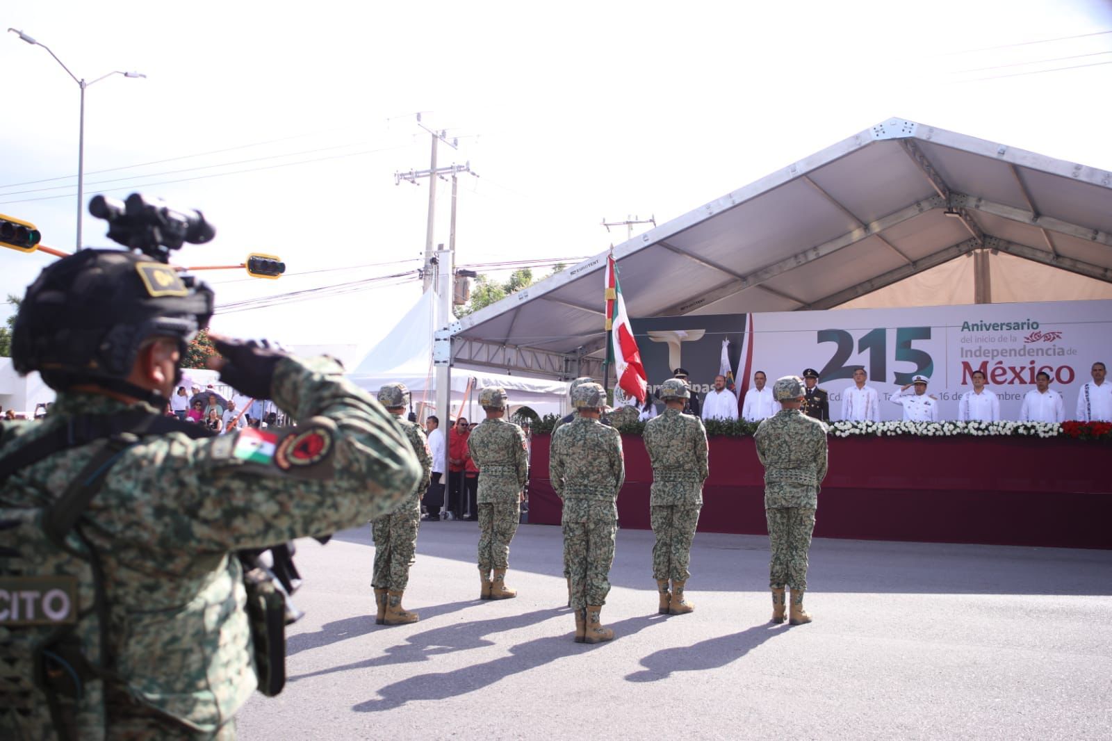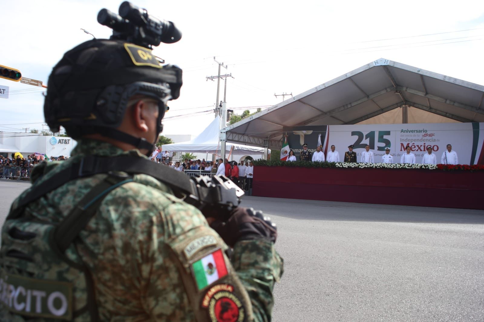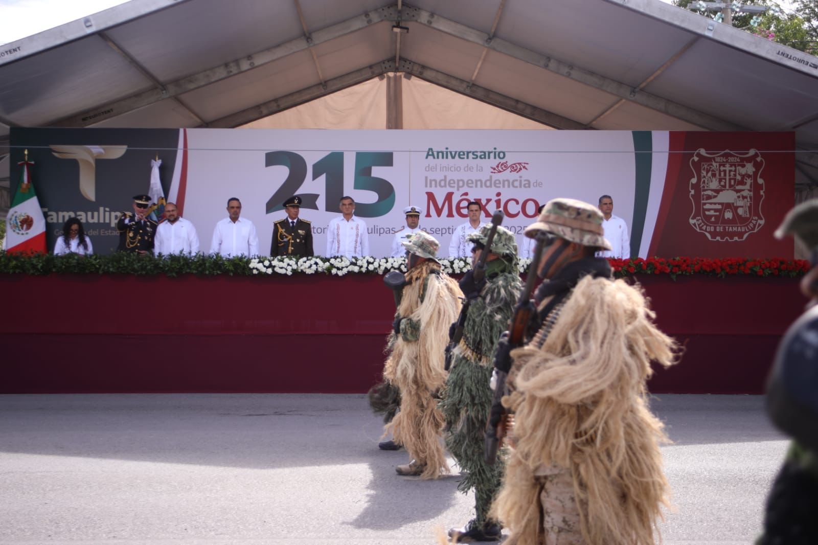 Ciudad Victoria, Tamaulipas. - La conmemoración de las Fiestas Patrias en todo Tamaulipas se celebró sin ningún incidente. "Todo fue en paz", afirmó el gobernador Américo Villarreal Anaya al término del desfile del 215 aniversario del inicio de la Independencia de México, en el que participaron más de 1,767 estudiantes y más de 1,100 elementos de las fuerzas armadas.