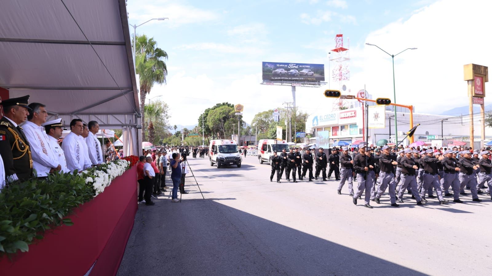 Luego de presidir la parada cívico-militar a lo largo del bulevar Tamaulipas, en la que se congregaron miles de familias, el mandatario estatal destacó el clima de paz y seguridad que prevaleció en los 43 municipios, así como la entusiasta participación de la población en todos los eventos.