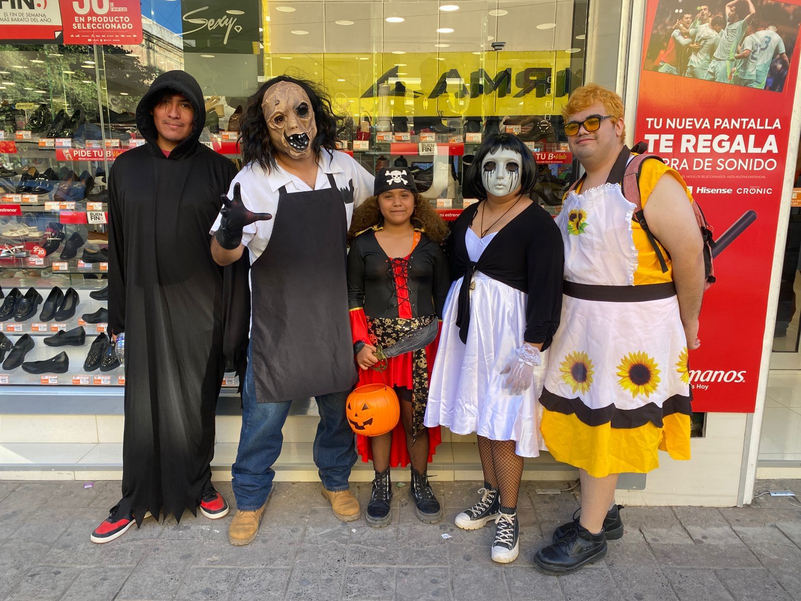 En la plaza Juárez, la festividad de origen estadounidense se mezcló con las tradiciones mexicanas del Día de Muertos: entre monstruos, brujitas y payasos diabólicos también se admiraron altares, catrinas y una proyección cinematográfica alusiva a estas fechas.