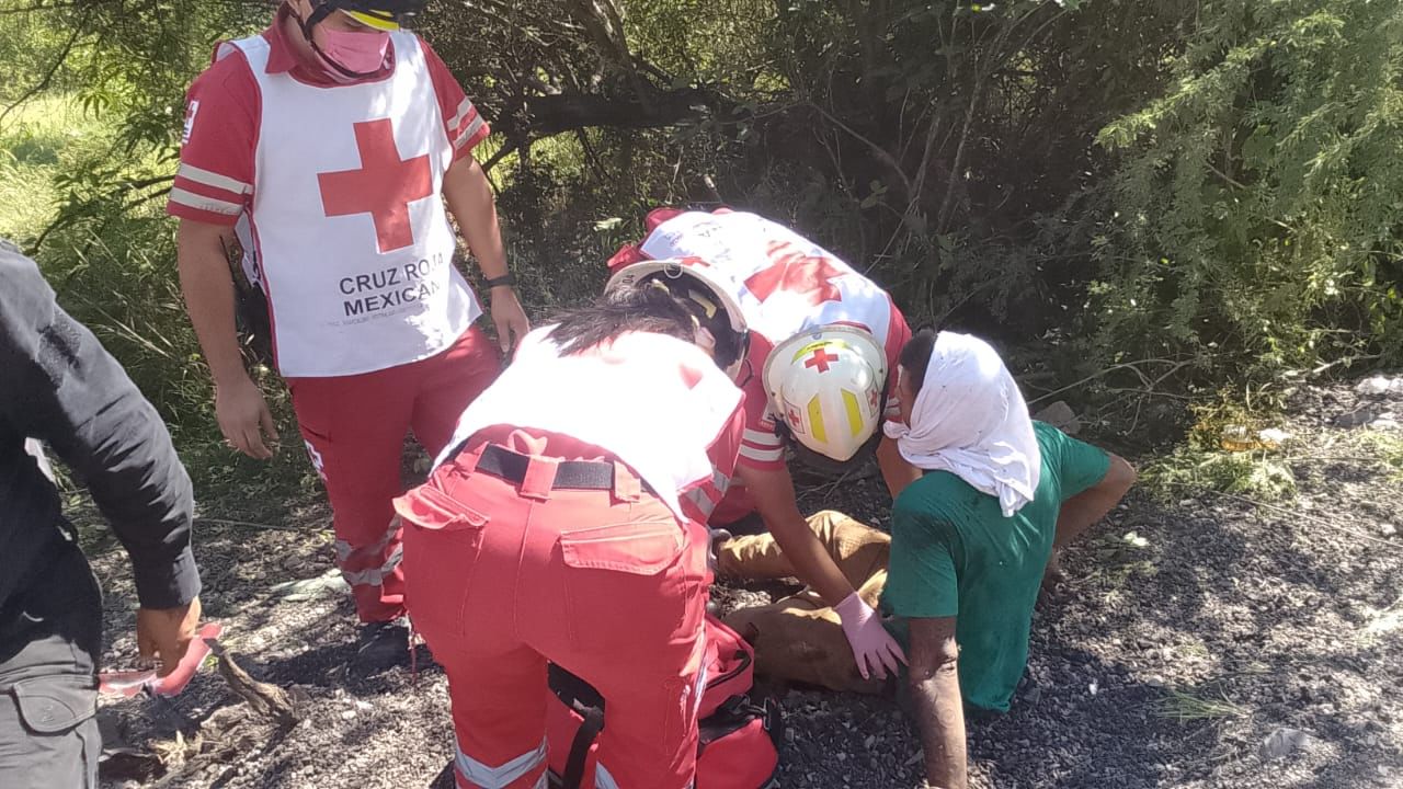 Acudiendo paramédicos de la Cruz Roja, los cuales le prestaron los primeros auxilios al conductor de un camión, el hombre presentaba varias lesiones en su cuerpo.