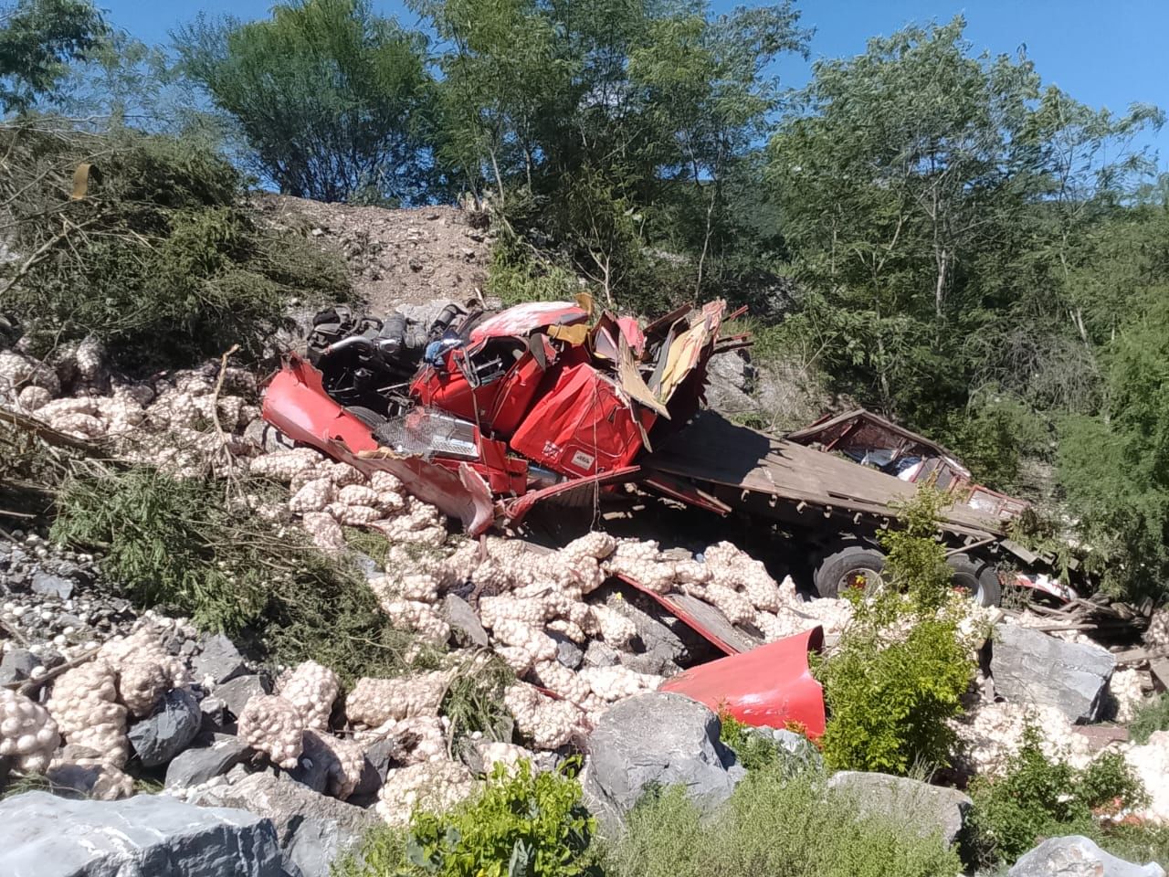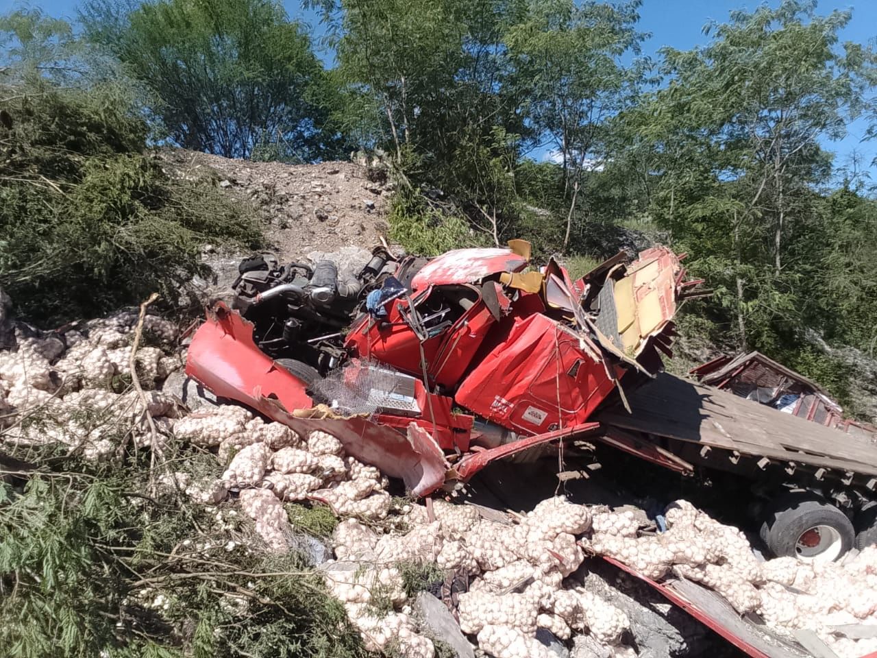 Para luego caer a un barranco, y que su unidad quedará completamente destrozada, mientras que toda su mercancía de cebolla tirada en el sitio.