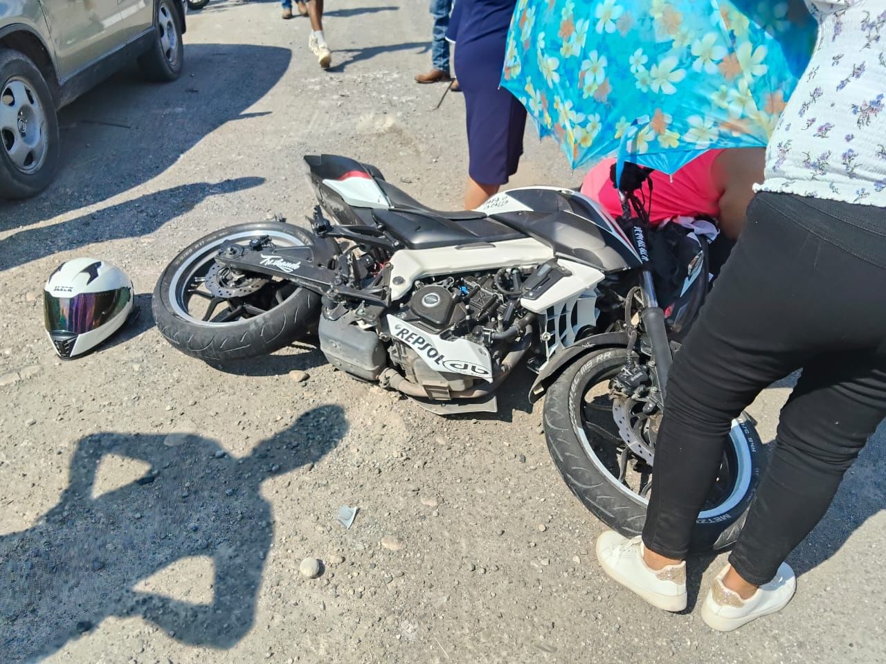 Mientras que la motocicleta en la que circulaba, quedó con daños materiales.