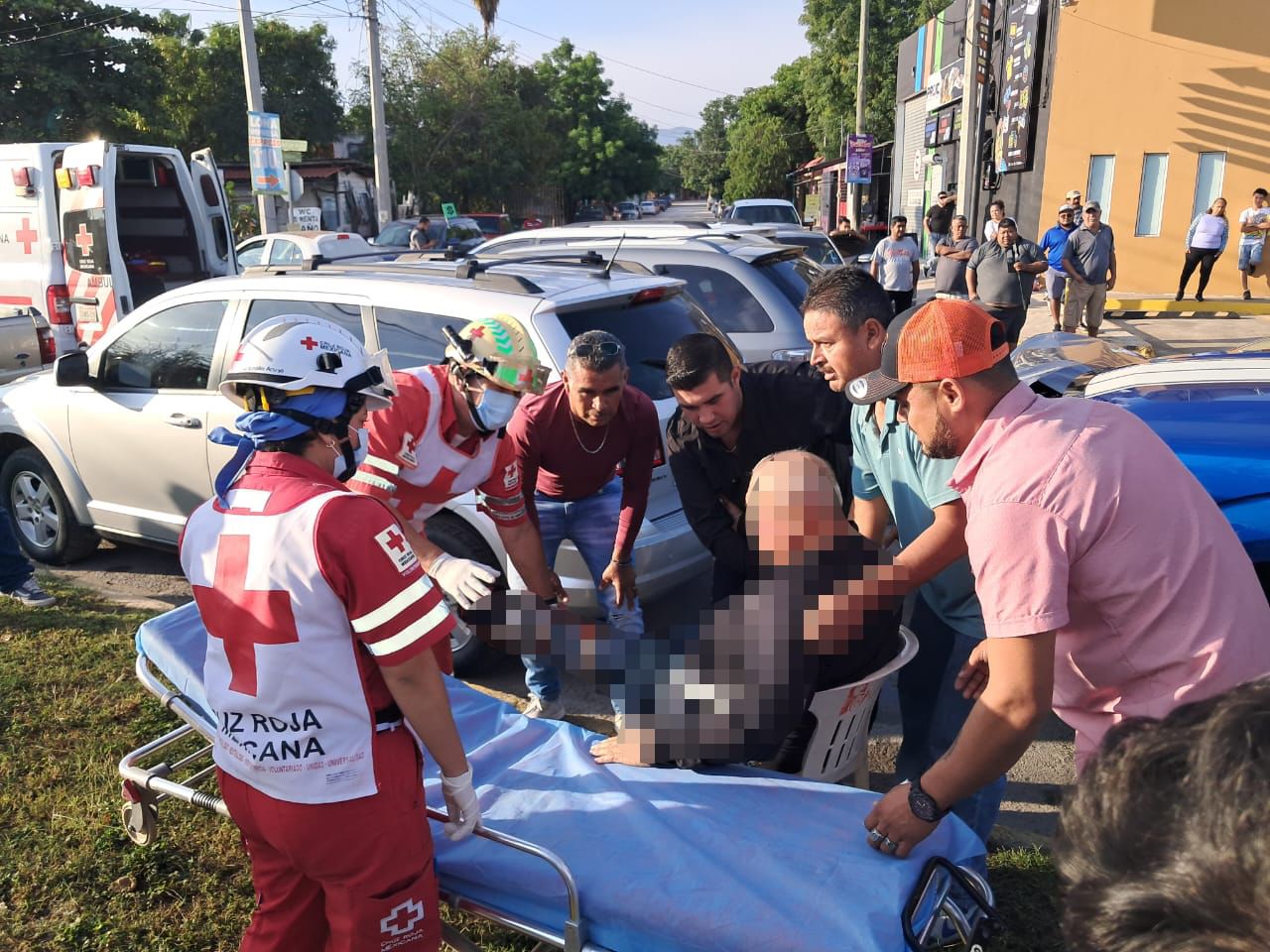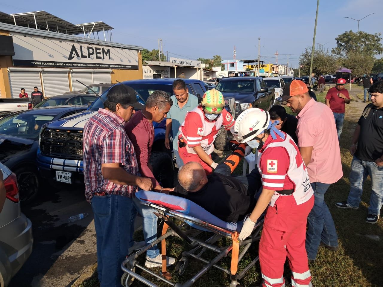 Paramédicos de la Cruz Roja, acudieron para brindarle los primeros auxilios y trasladar al hombre a un hospital, debido a los golpes que presentaba.