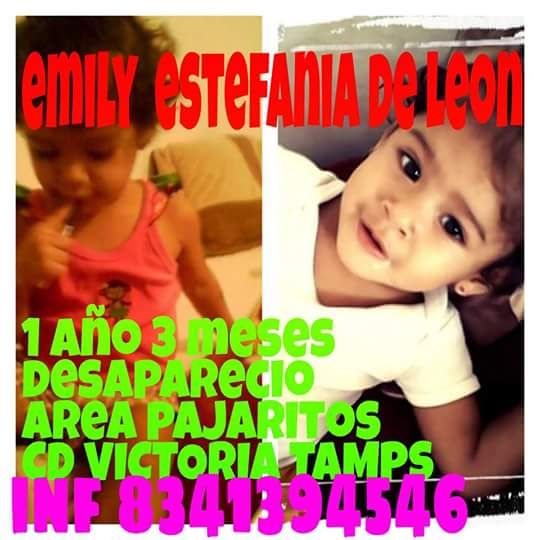 En ella se aprecia que la niña lleva por nombre Emily Estefania De León y cuenta con un años tres meses de edad, y así mismo dejan un número de celular para cualquier información.