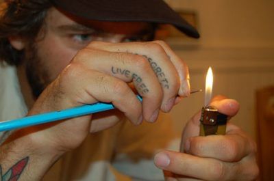 Un hilo —puede ser hilo dental— se enrolla alrededor de la aguja. Cuando la aguja se sumerge en la tinta elegida (tinta profesional de tatuaje o tinta de la India de una tienda de artesanía de renombre, por supuesto), el hilo se empapa del líquido, que gotea dentro de la piel cuando la aguja presiona y perfora en repetidas ocasiones; sólo una fracción de un centímetro en la piel.